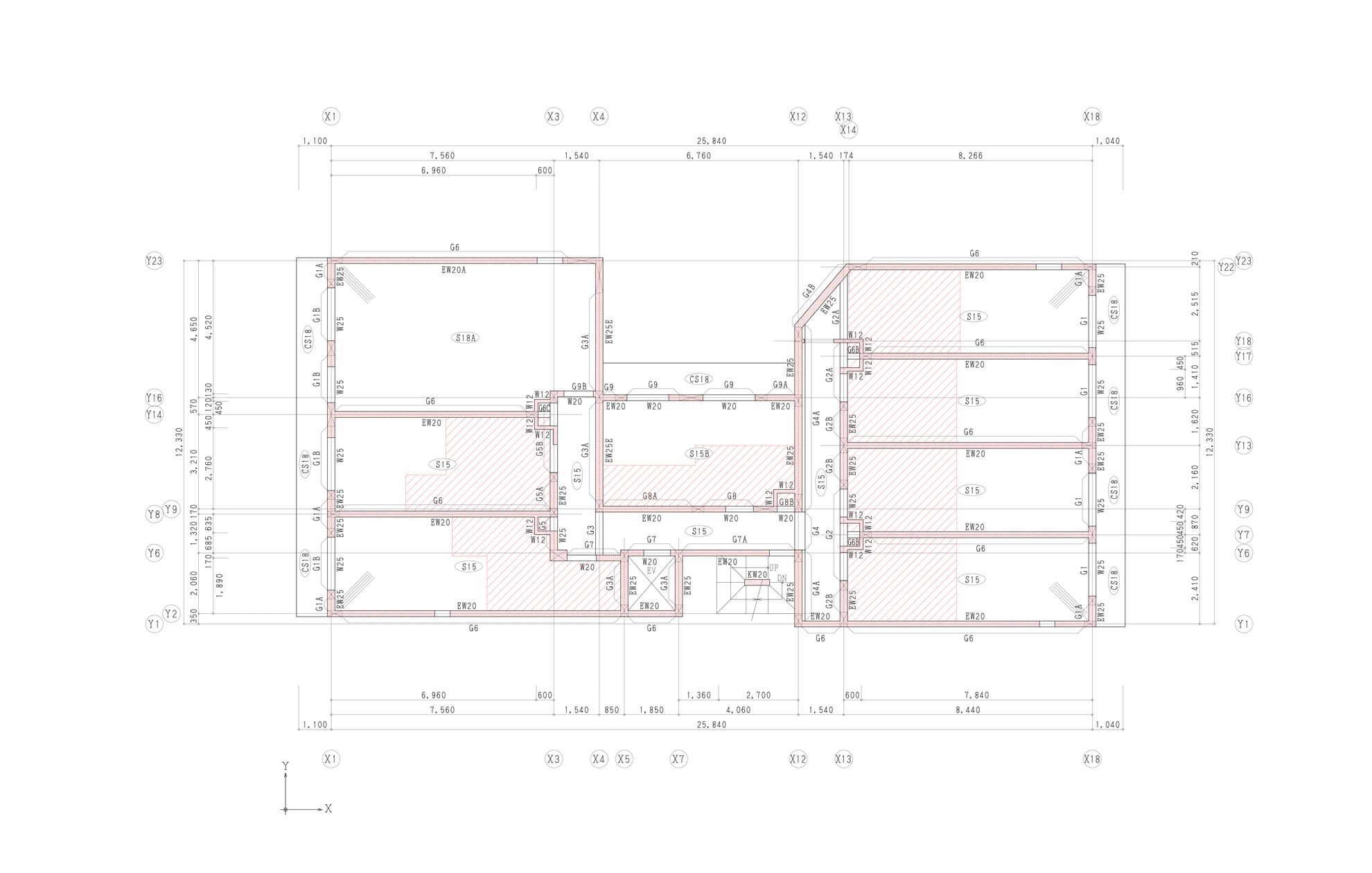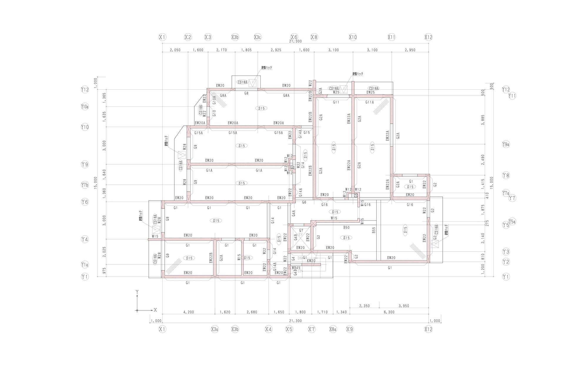 柱型・梁型を一切持たない純粋な壁式架構を維持しながら、 独自の壁量計画・開口補強ディテール・雑壁活用理論など特許技術を体系化することで、中高層への適用を可能とし、現状では15階建てまでの設計実績があります。
